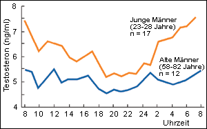 Gesundes Altern ist mit dem allmählichen Abfall des Gesamt- und des freien Testosterons im Serum verbunden.